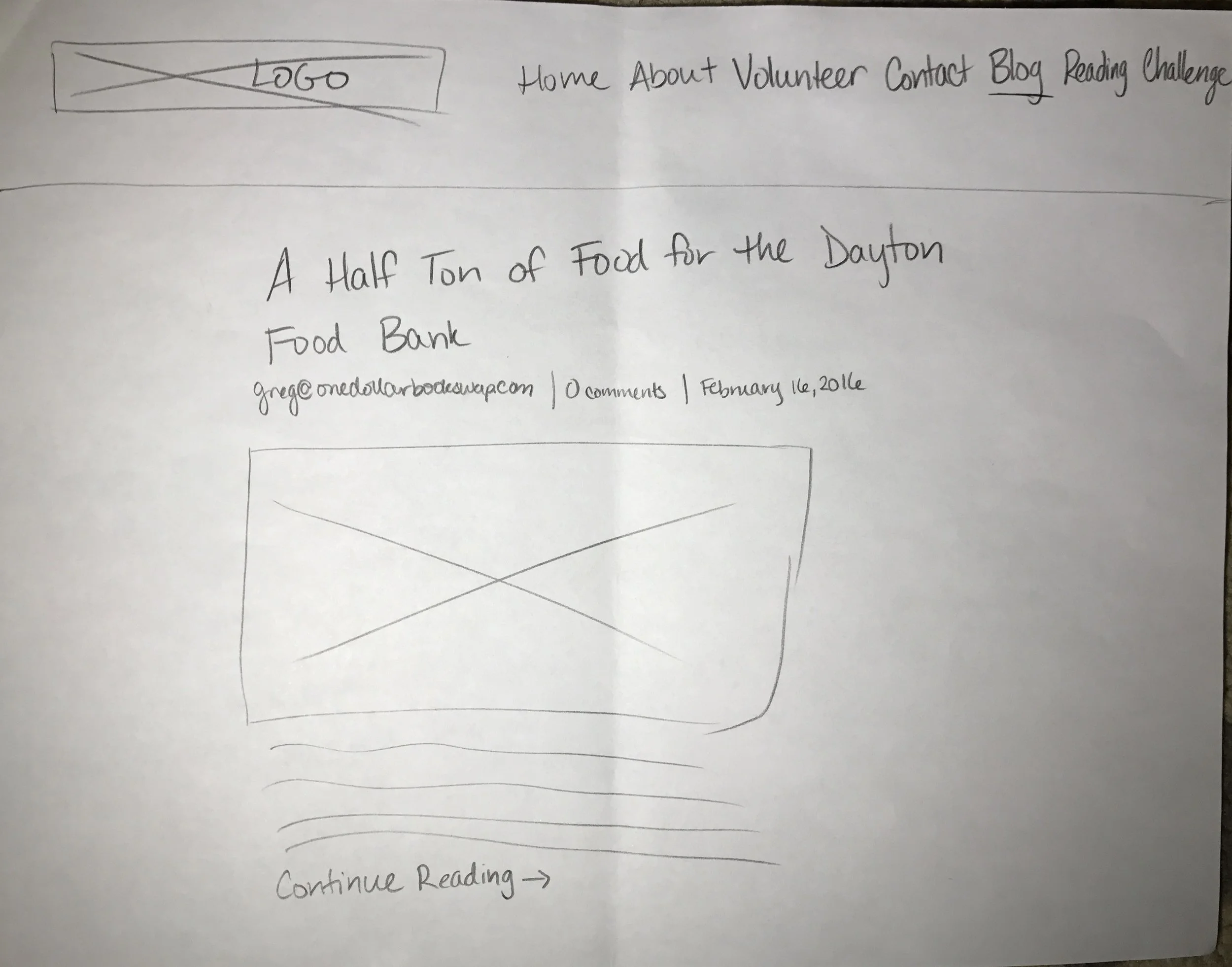 Now that I knew what the users needed out of the site and I had clear project goals, I moved on to the wireframing process. Instead of creating actual-size digital wireframes, I started with thumbnail sketches on paper to quickly experi- ment with different layouts.