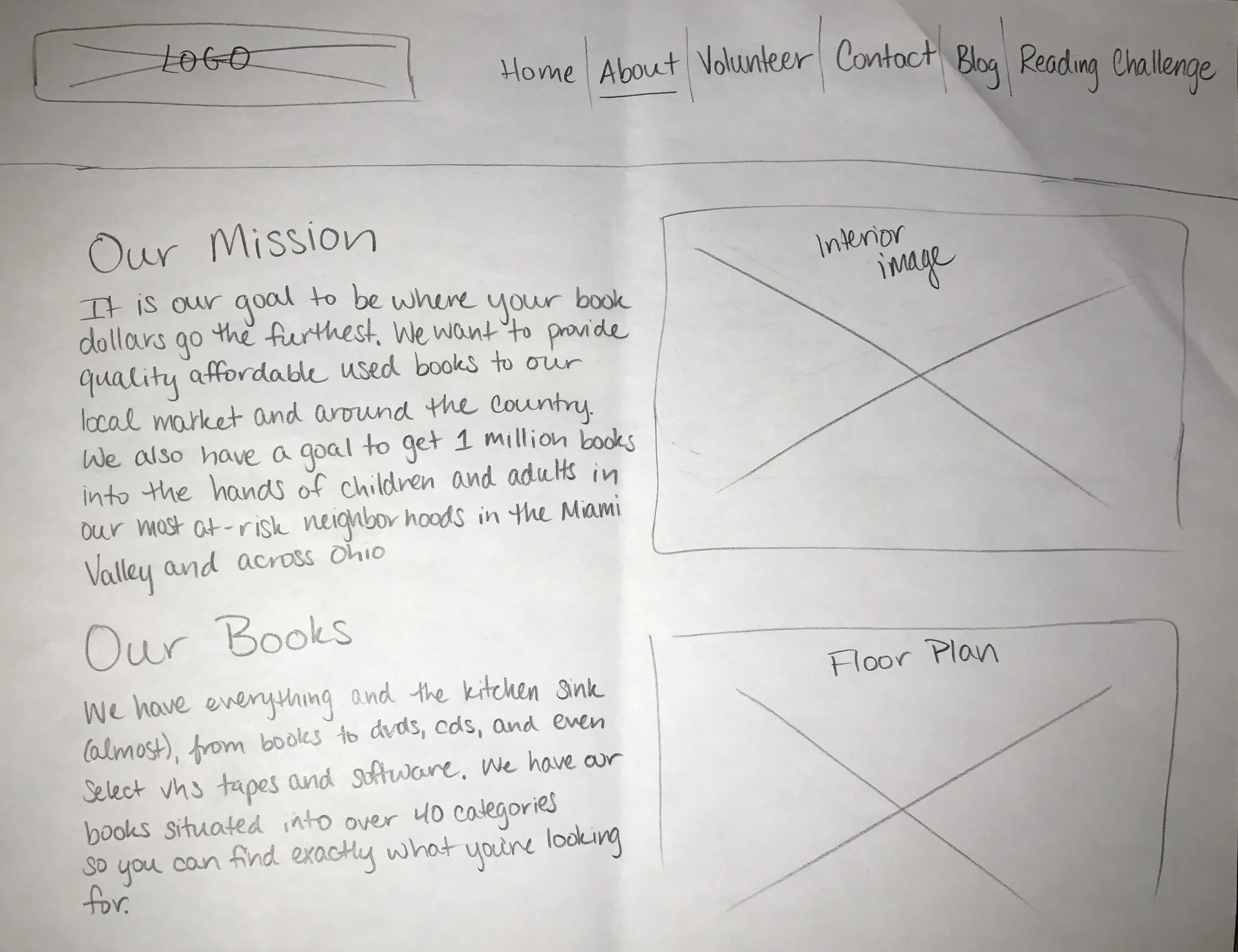 While I was taking a User Experience and Interface Design class, I had to choose a website to redesign using the principles and user testing techniques we'd learned. I selected a website for a local used bookstore and proceeded through the design process.