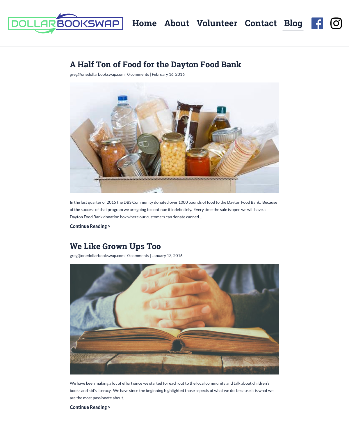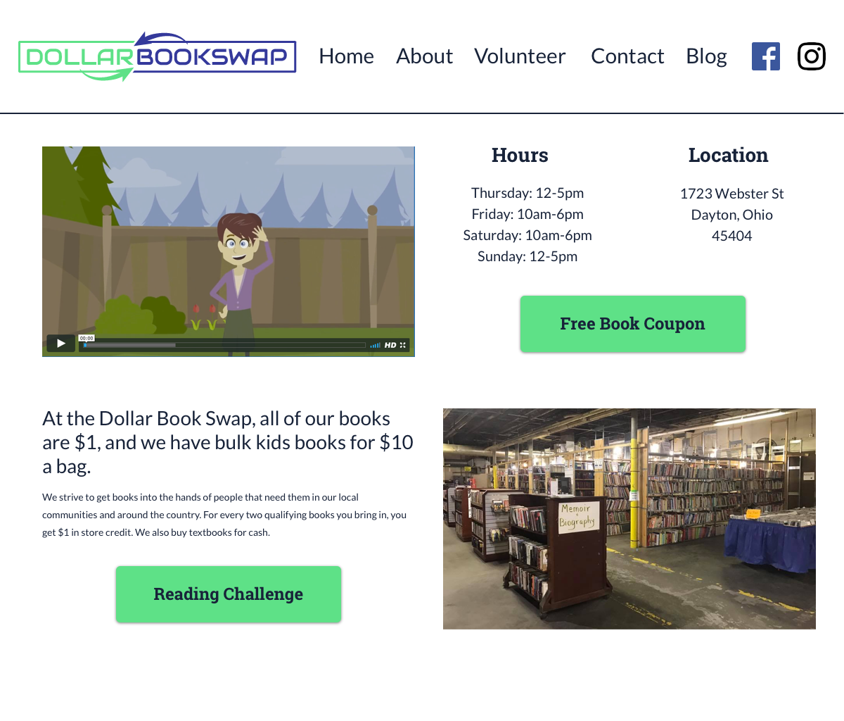 Naming inconsistent – “Dollar Bookswap” or “Dollar Book Swap Community Book Sale” (and their Facebook page is “One Dollar Book Swap”)