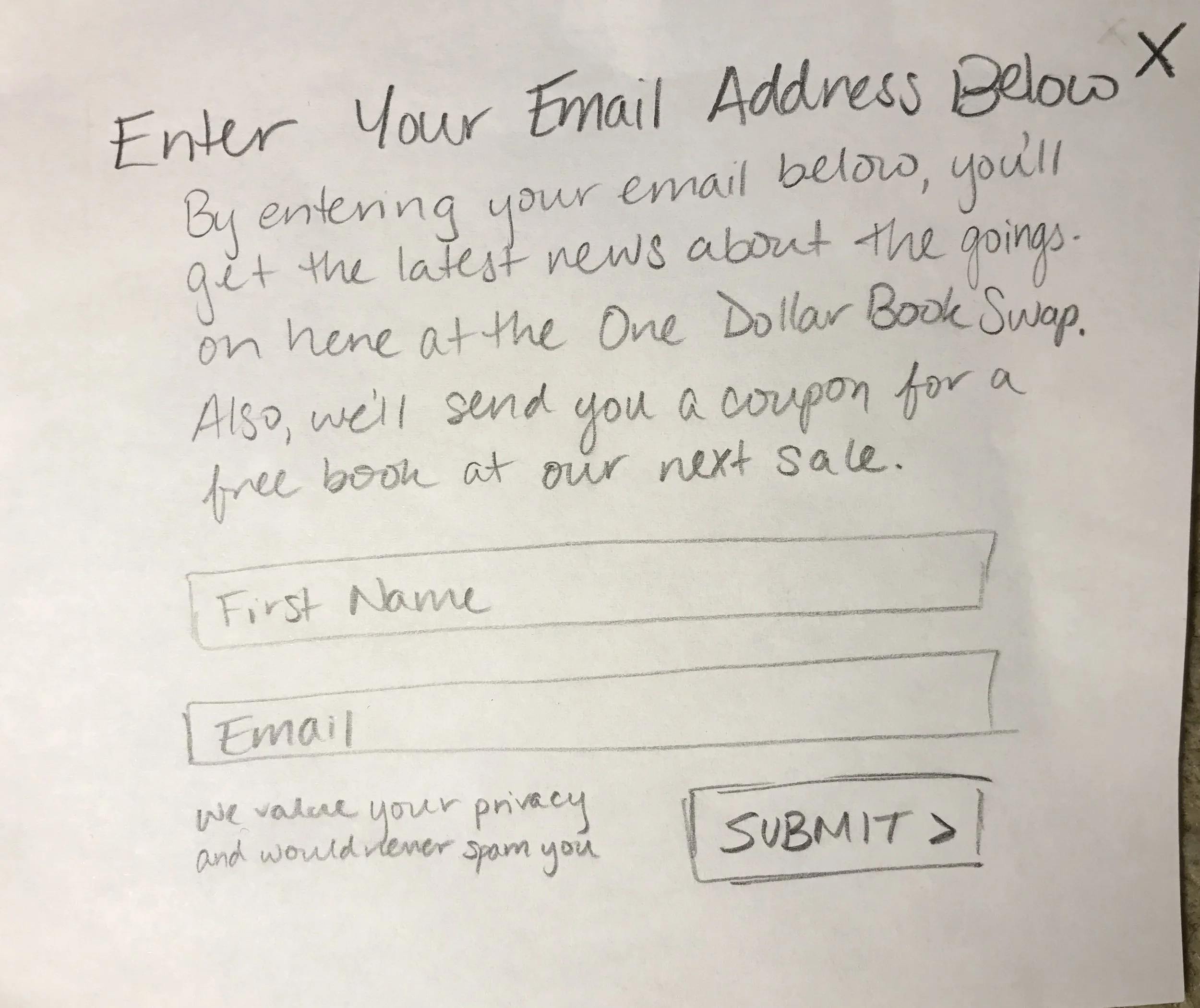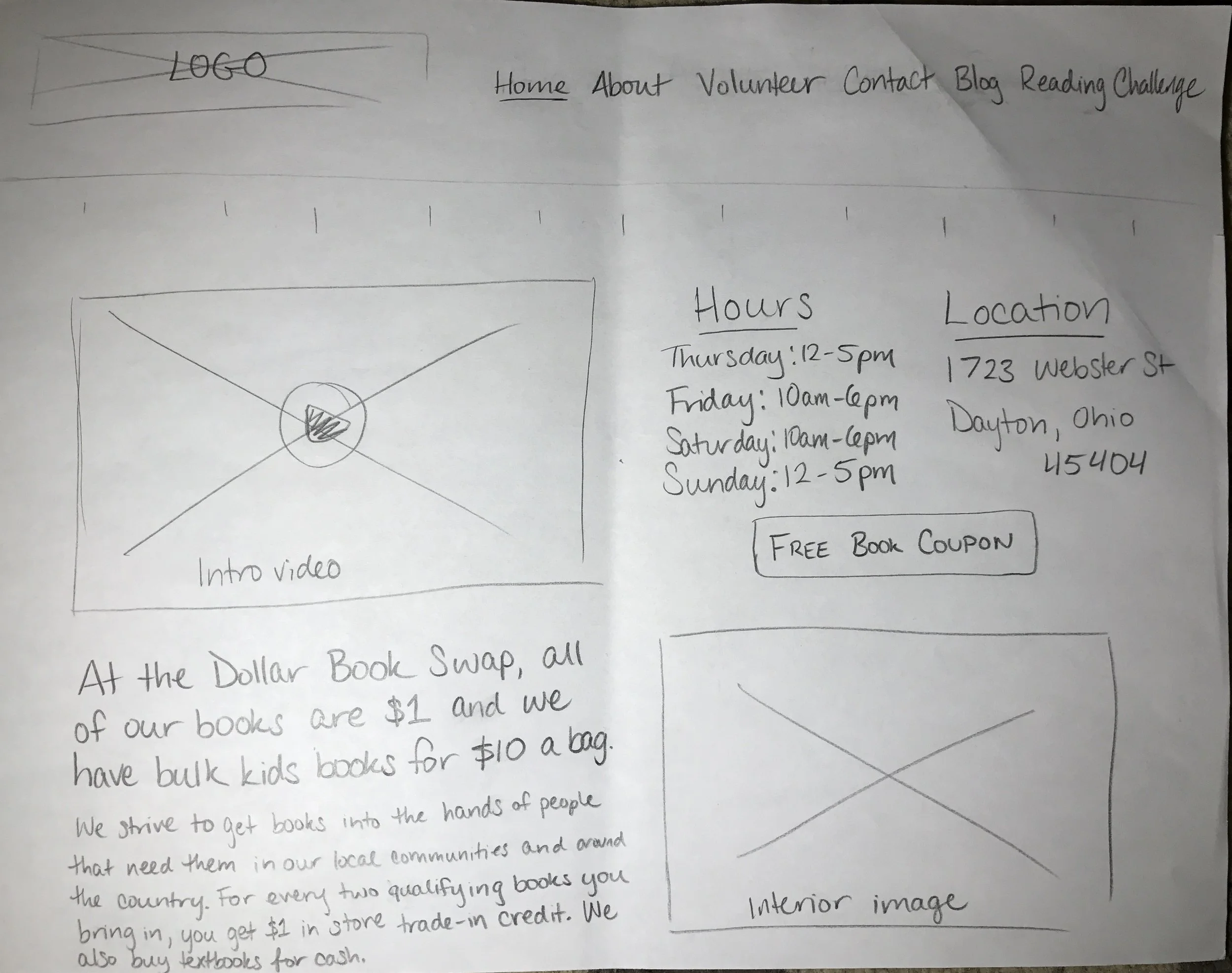 I was tasked to choose a website that had elements I found jarring or out-of-sync with my expectations, and I chose a local used bookstore, The Dollar Book Swap. From my initial examination of the site, I settled on the following elements to address in my redesign: