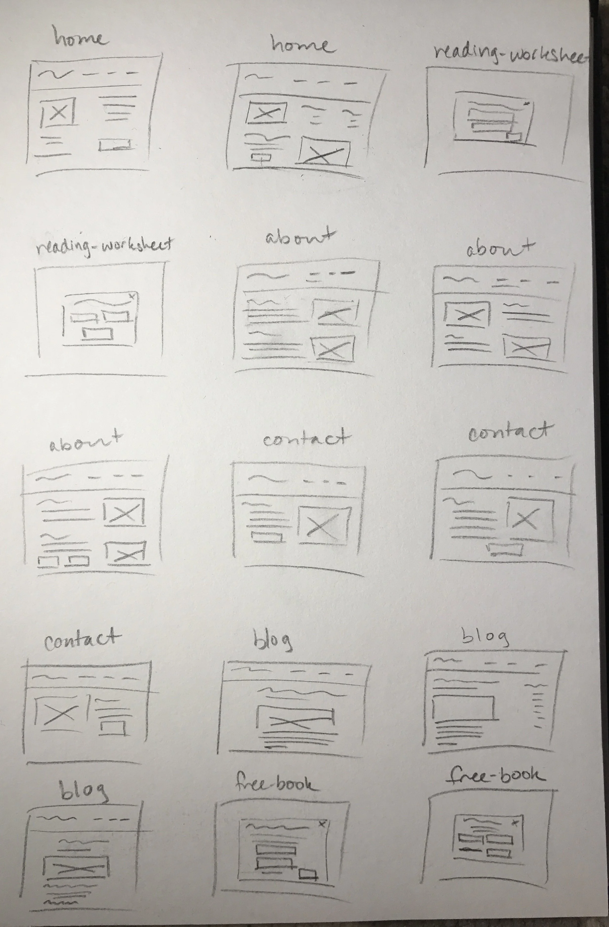 Now that I knew what the users needed out of the site and I had clear project goals, I moved on to the wireframing process. Instead of creating actual-size digital wireframes, I started with thumbnail sketches on paper to quickly experiment with different layouts.
